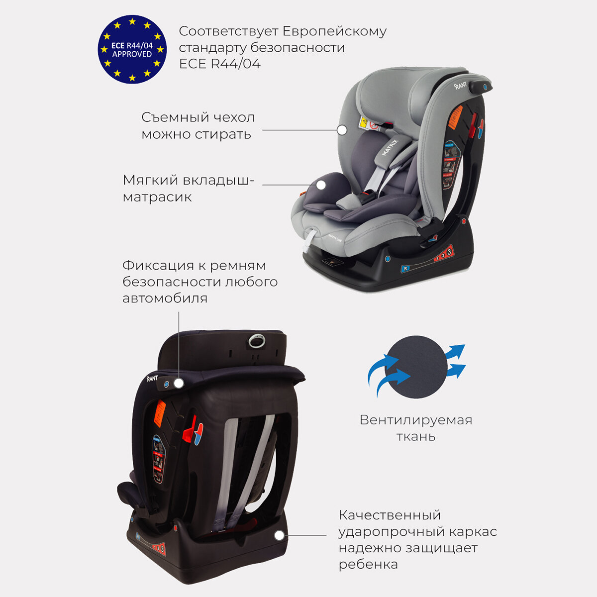 Автокресло Rant AY913 ''MATRIX'' Safety Line (Storm Grey) группа 0 -1-2-3(0-36 кг)