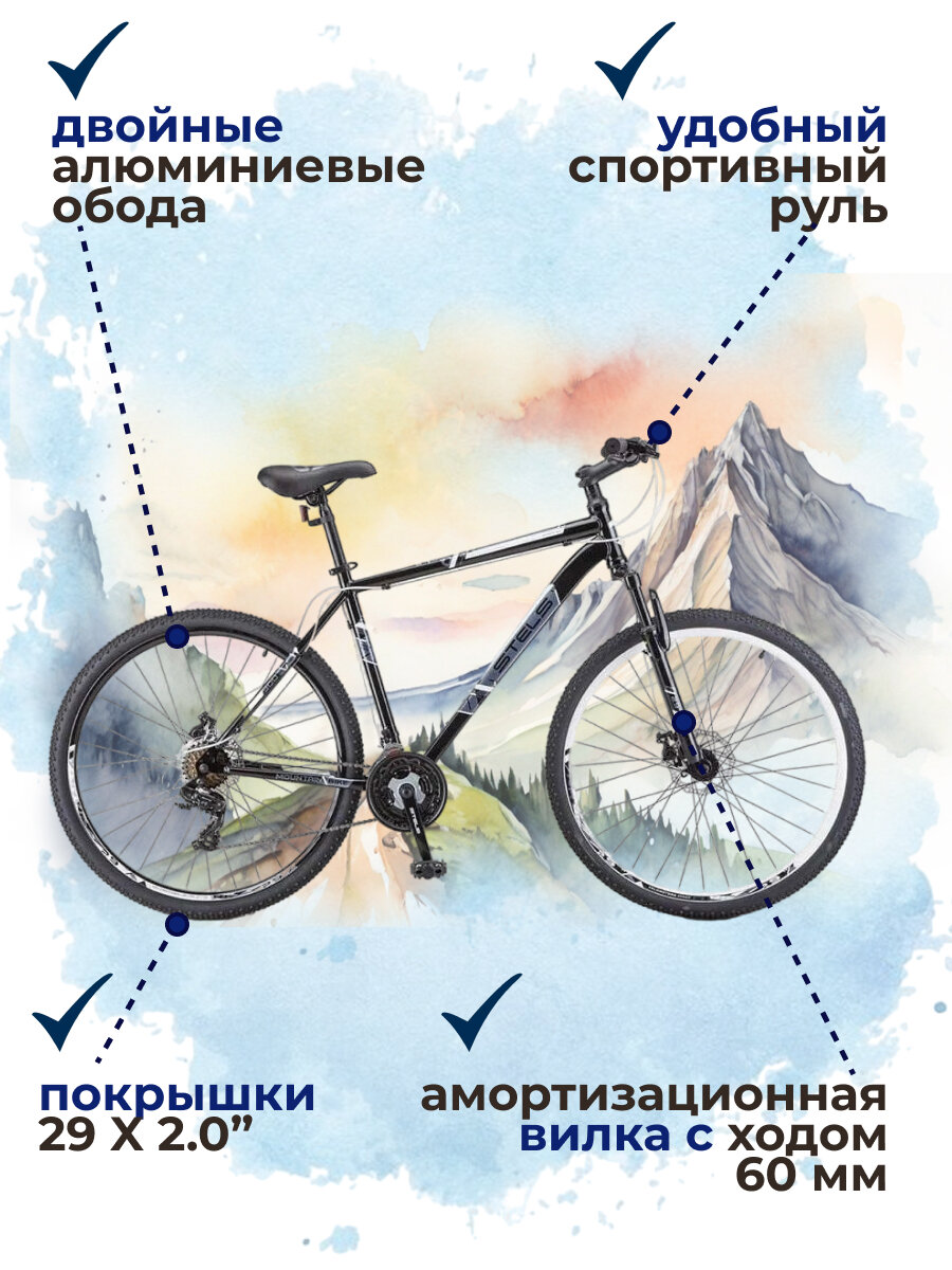 Велосипеды Велосипед горный с колесами 29" Stels Navigator 900 D F020 чёрный / белый рама 19", 21 скорость