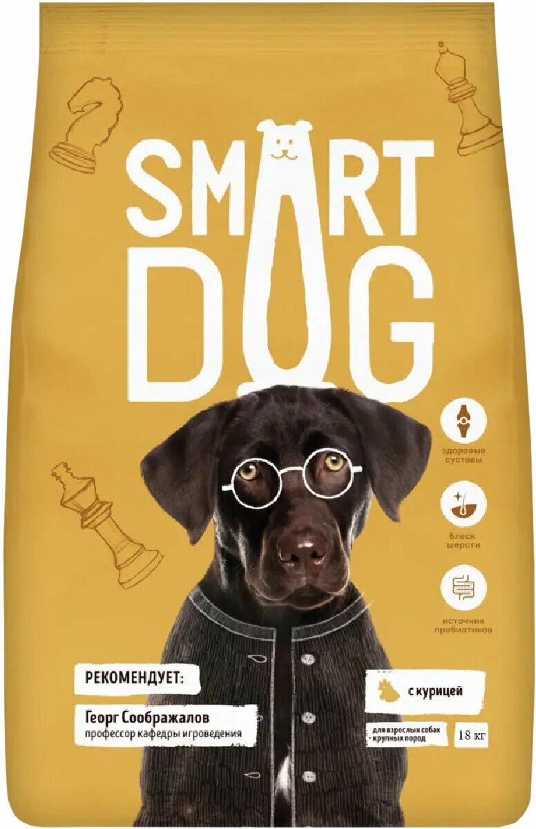 Корм сухой Smart Dog для взрослых собак крупных пород с курицей, 18 кг