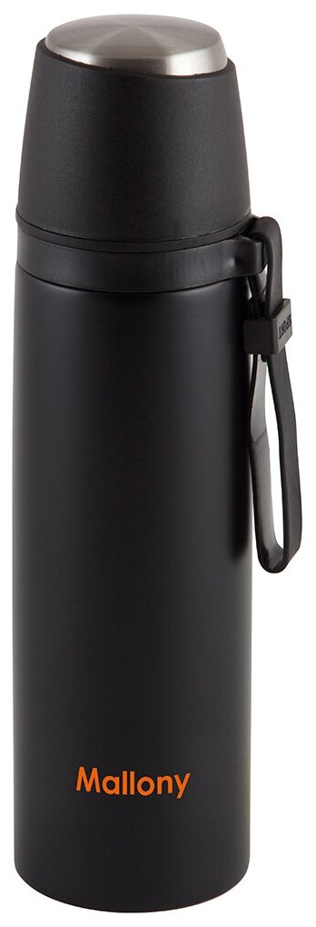 Термос Mallony NERO 005242, с крышкой-чашкой, с ремешком, 0,5л, нержавеющая сталь