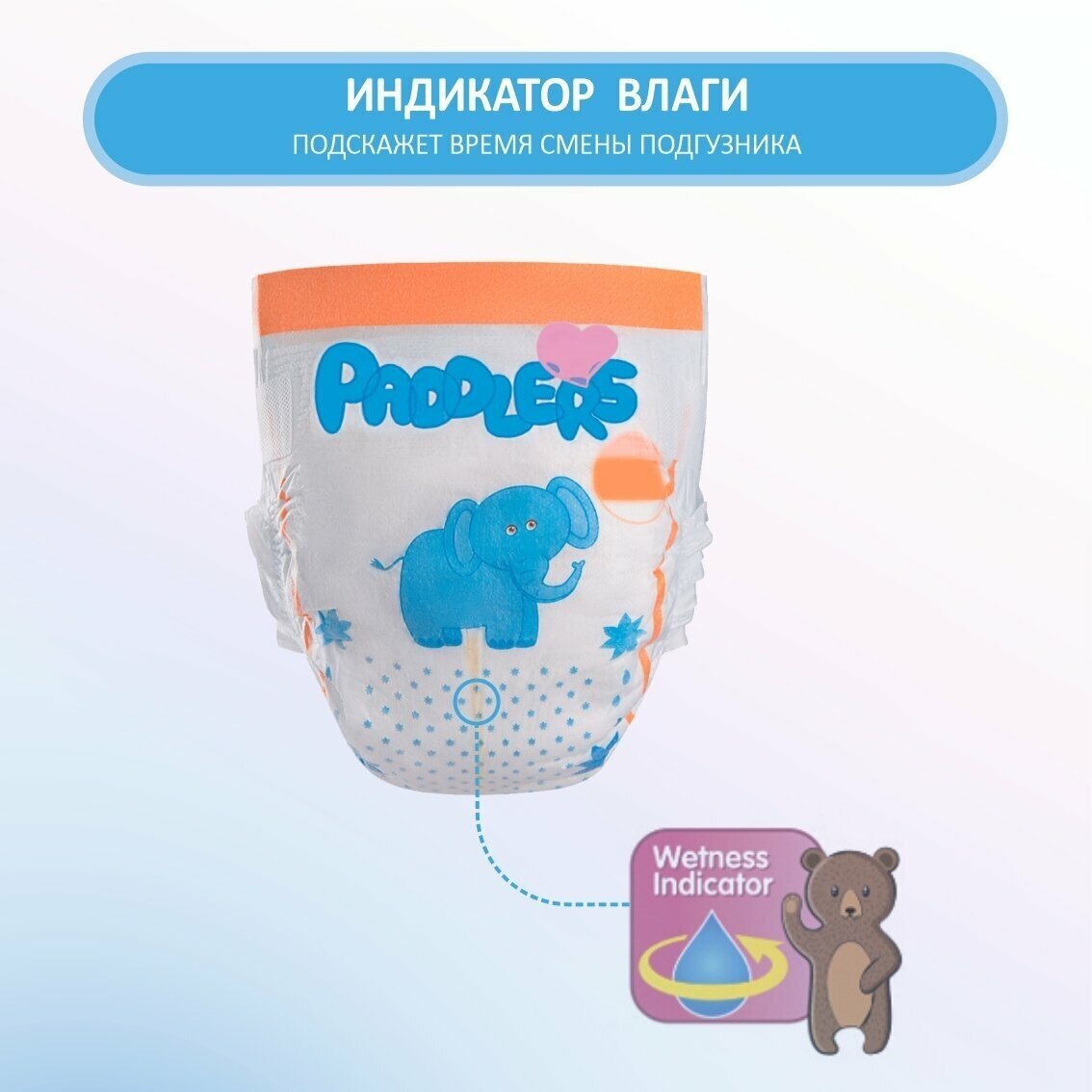 Лучшие цены. Подгузники Paddlers станут отличным помощником в борьбе за сон и спокойствия вашего малыша. Детские подгузники 5 размер Paddlers идеально подойдут для детей весом от 11 до 18 кг. Перед использованием подгузники необходимо встряхнуть для лучшего распределения абсорбента, это поможет избежать комкования наполнителя и дольше удерживать влагу. Индикатор влаги подскажет когда пора менять подгузник. Магазины в вашем городе.