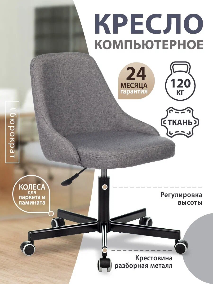 Кресло компьютерное CH-340M серый, ткань / Офисное кресло для оператора, персонала, сотрудника, для дома