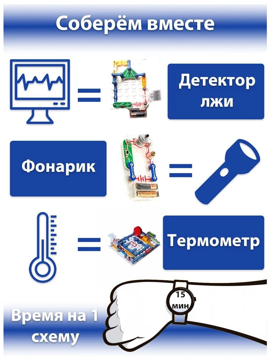 Лучшие цены. Электронный конструктор знаток 999 схем «Для школы и дома» среднего уровня позволит ребёнку начать интенсивное обучение электронике! В комплекте руководство для сборки 1000 проектов, а также книга с практическими занятиями по физике: электричество, электротехника, электроника! Собираем схемы с лампочкой, вентилятором, светодиодом. Знакомимся с индикатором, измерительными приборами, резисторами, конденсаторами, коммутирующими устройствами. Магазины в вашем городе.