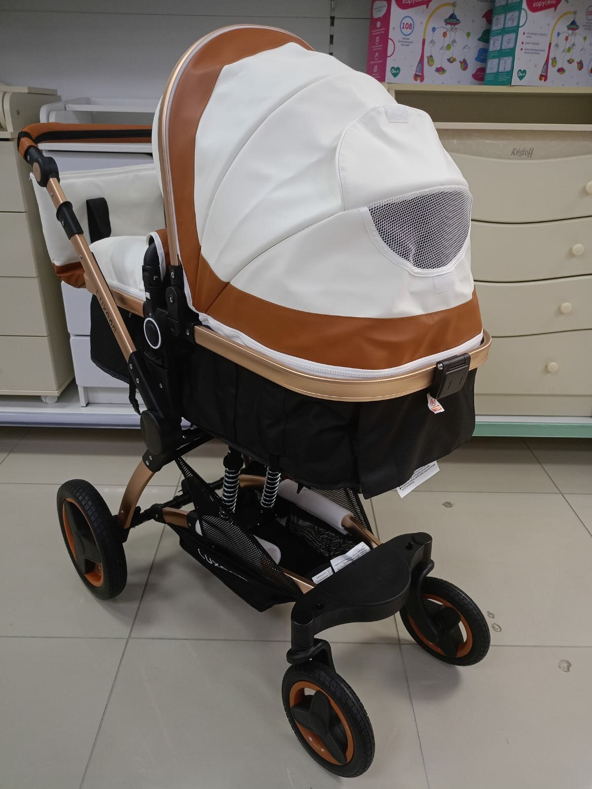 Детская коляска-трансформер 3 в 1 Luxmom X6, бело-коричневый
