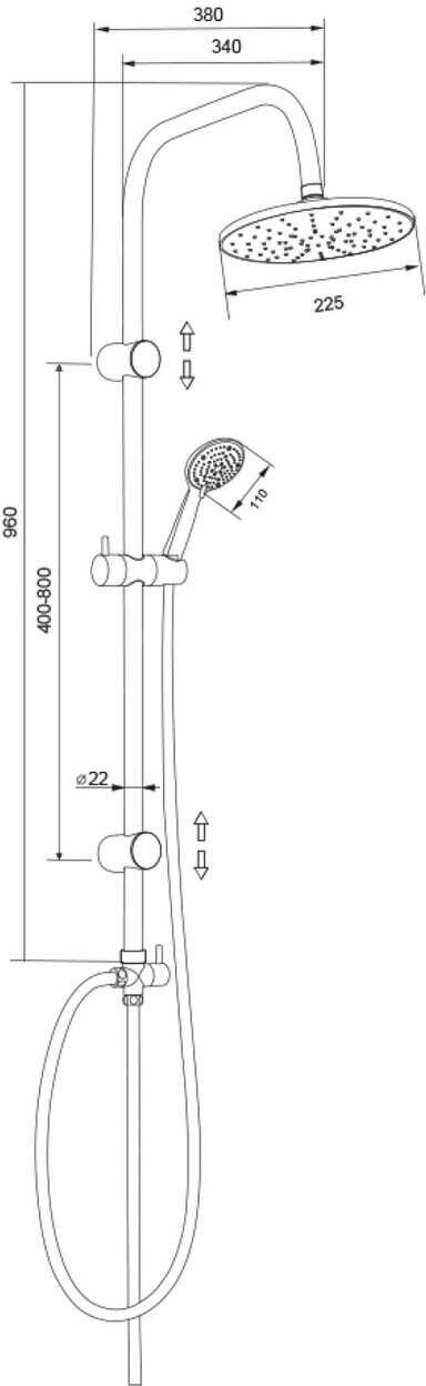 Душевой гарнитур 96см. с верхним душем, KDC01