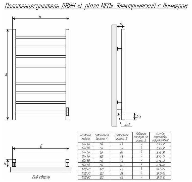 Полотенцесушитель электрический Двин L plaza neo 80/50 К диммер квадрат черный матовый (4656759179267)