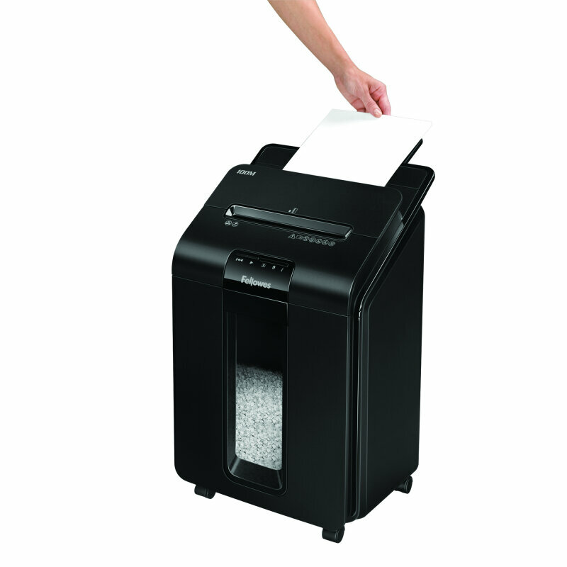 Лучшие цены. Уничтожитель документов Fellowes AutoMax 100M, 4ур. секр, 100лист, 23л Уничтожитель документов Fellowes AutoMax 100M является самым компактным и наиболее доступным шредером Fellowes c автоматической подачей документов. Гибридная автоматическая/ручная подача повышает удобство в использовании. Пару листов быстрее и проще уничтожить с помощью слота ручной подачи, а если скопилась пачка до 100 листов, то на помощь придет автоподача. Магазины в вашем городе.