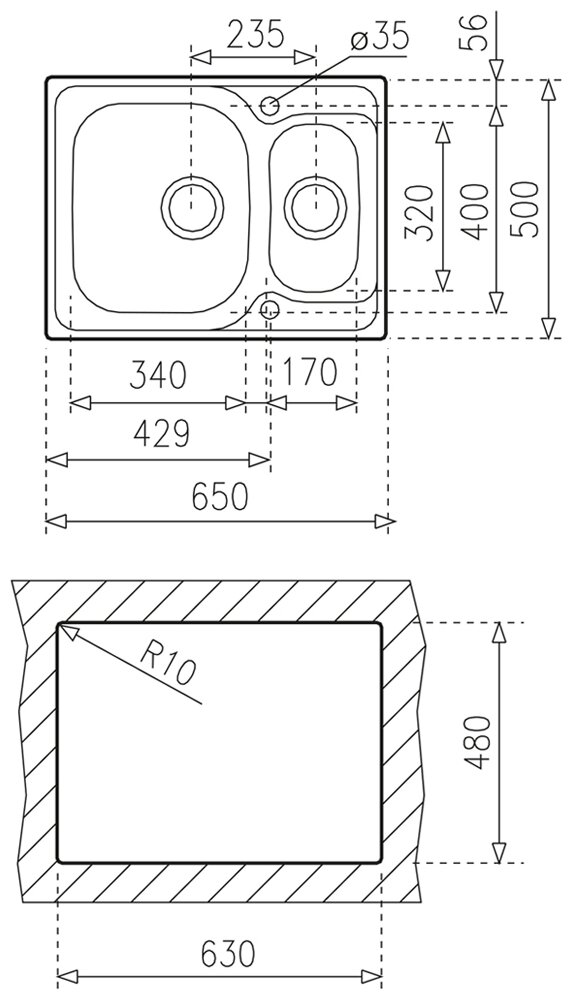 | Размеры врезного отверстия (накладная) | 630x480 мм |