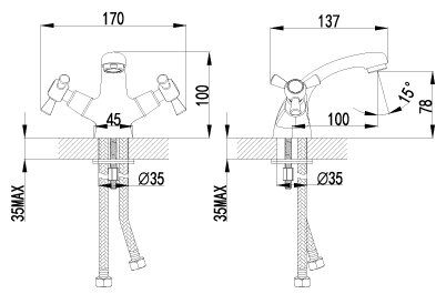 | Тип смесителя | двухвентильный / с крестовыми рукоятками / |