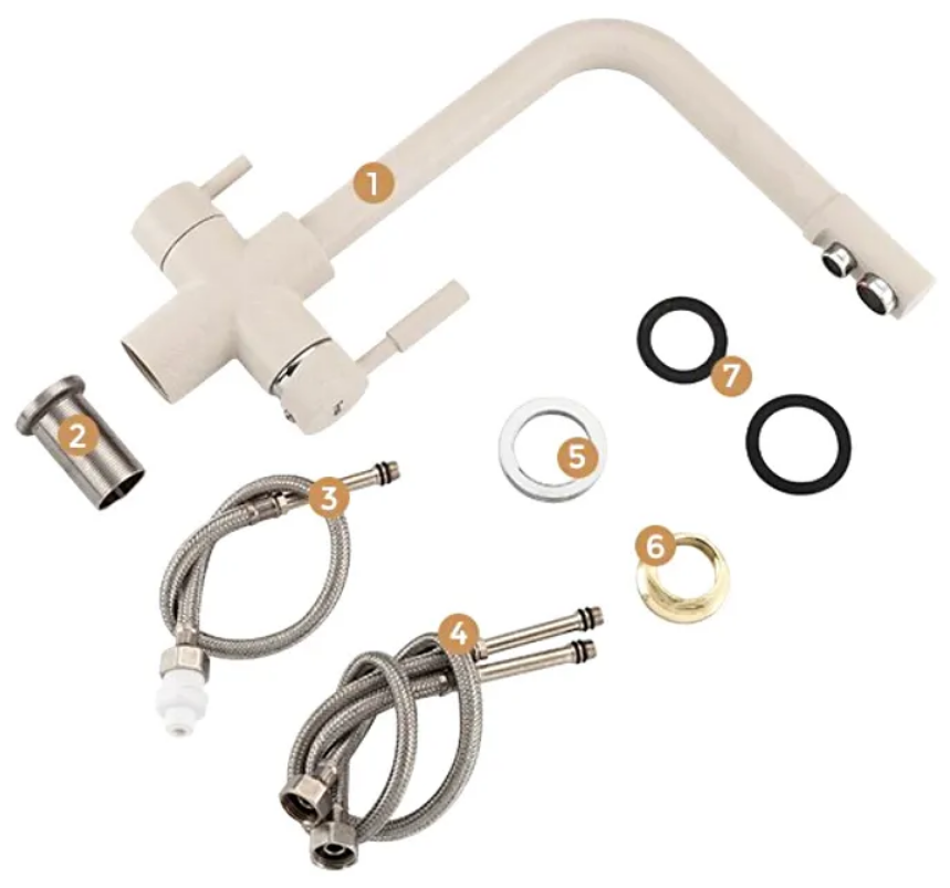 F4352-23 Смеситель кухня шаровый с питьевой водой Высокий (Бежевый)