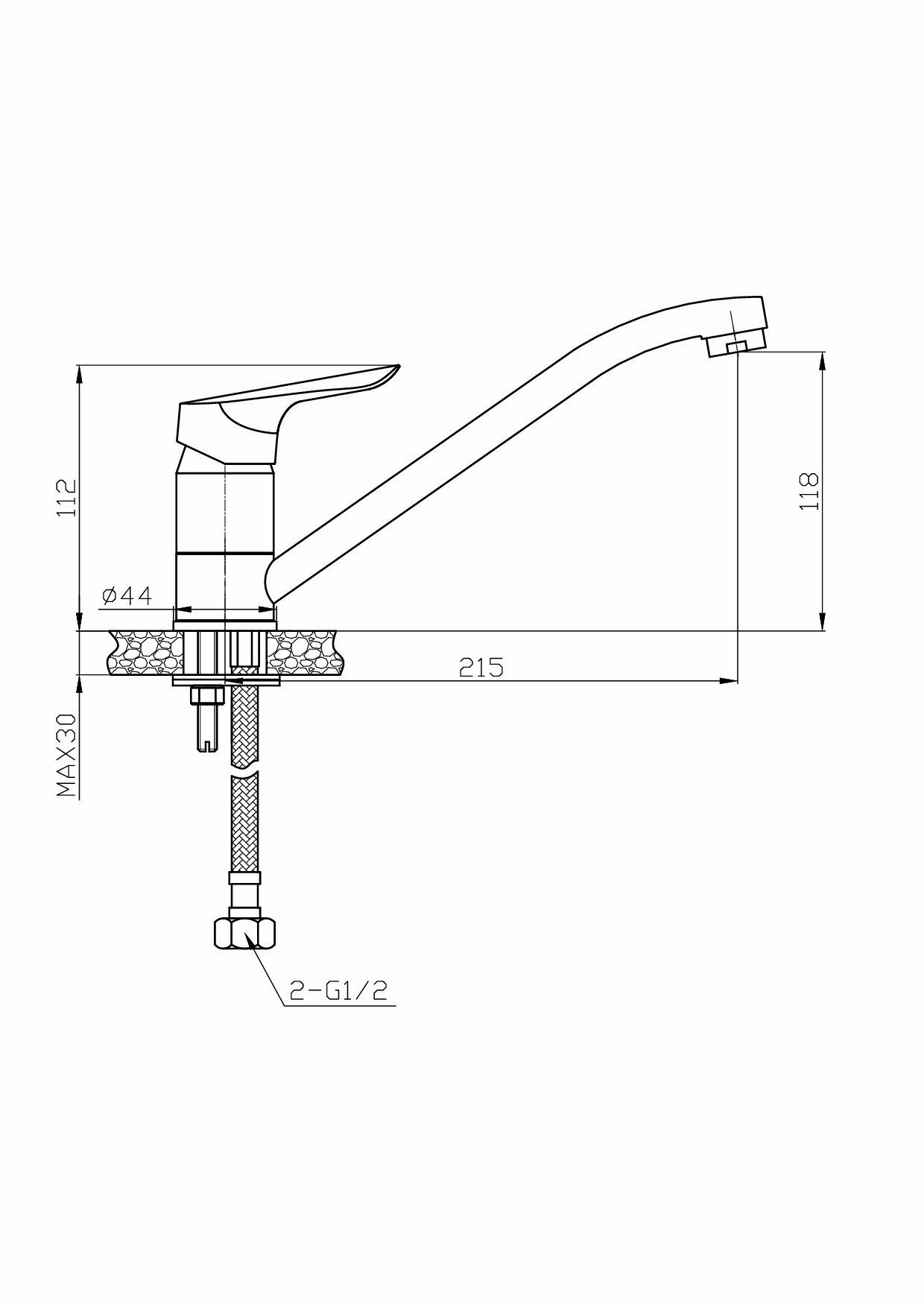 Смеситель для кухни 35к ESKO CI05 "Cairo" длинный излив, крепление "две шпильки"