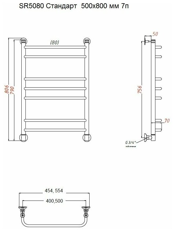 Полотенцесушитель Стандарт полотенцесушитель водяной 500х800 мм /7п/, лесенка, Termosmart