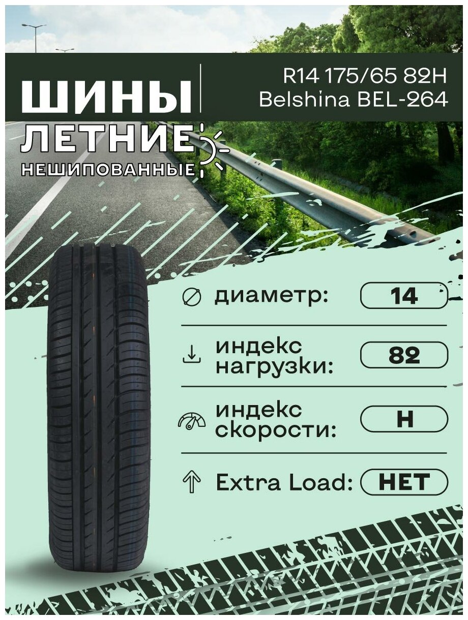 Лучшие цены. Белорусские фрикционные летние шины R14 175/65 82H Belshina BEL-264 – это надежные нешипованные автомобильные шины для легковых автомобилей. Бескамерные шины летние R14 с индексом скорости до 210 км/ч • характеризуются современным асимметричным рисунком протектора • обеспечивают отличные эксплуатационные показатели по комфортабельности, топливной экономичности, устойчивости и управляемости • являются отличным вариантом для легковых автомобилей малого и среднего класса Автомобильные шины с индексом нагрузки. Магазины в вашем городе.
