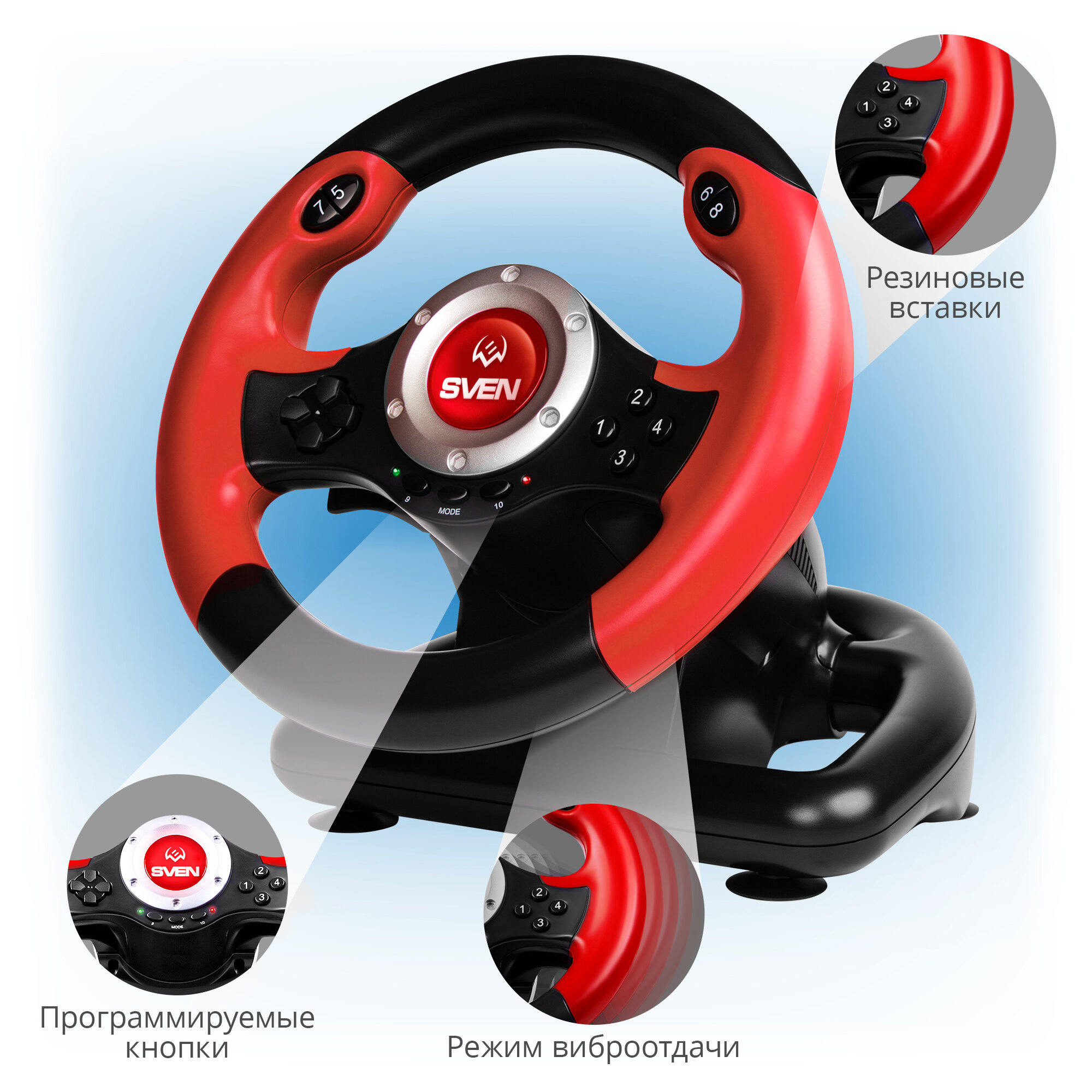 Руль SVEN GC-W400 черно-красный (USB, 8п джойстик)