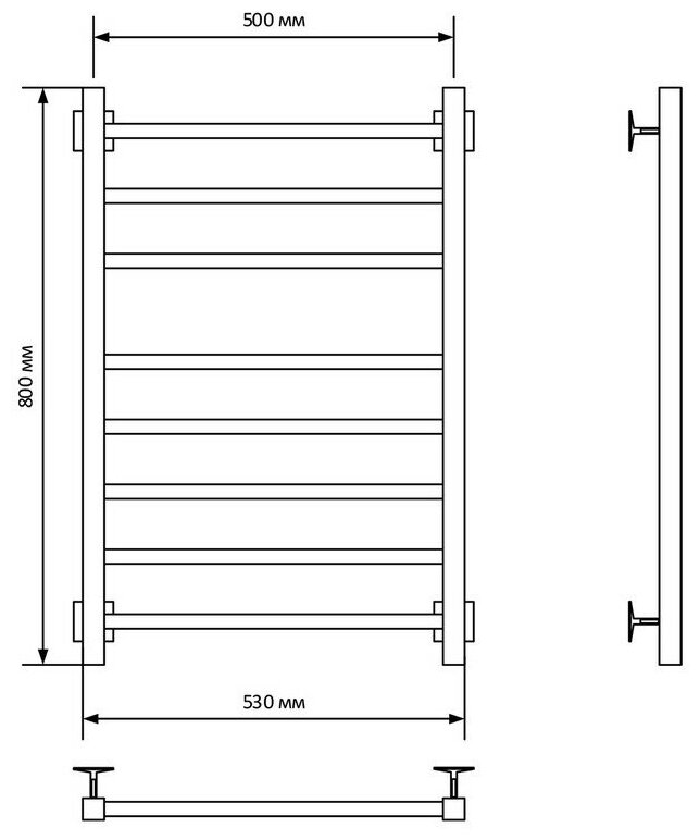 ZOX Полотенцесушитель электрический ЛЦ 80х50 8 перекл триумф белый правый, терморег,425 Вт 547277