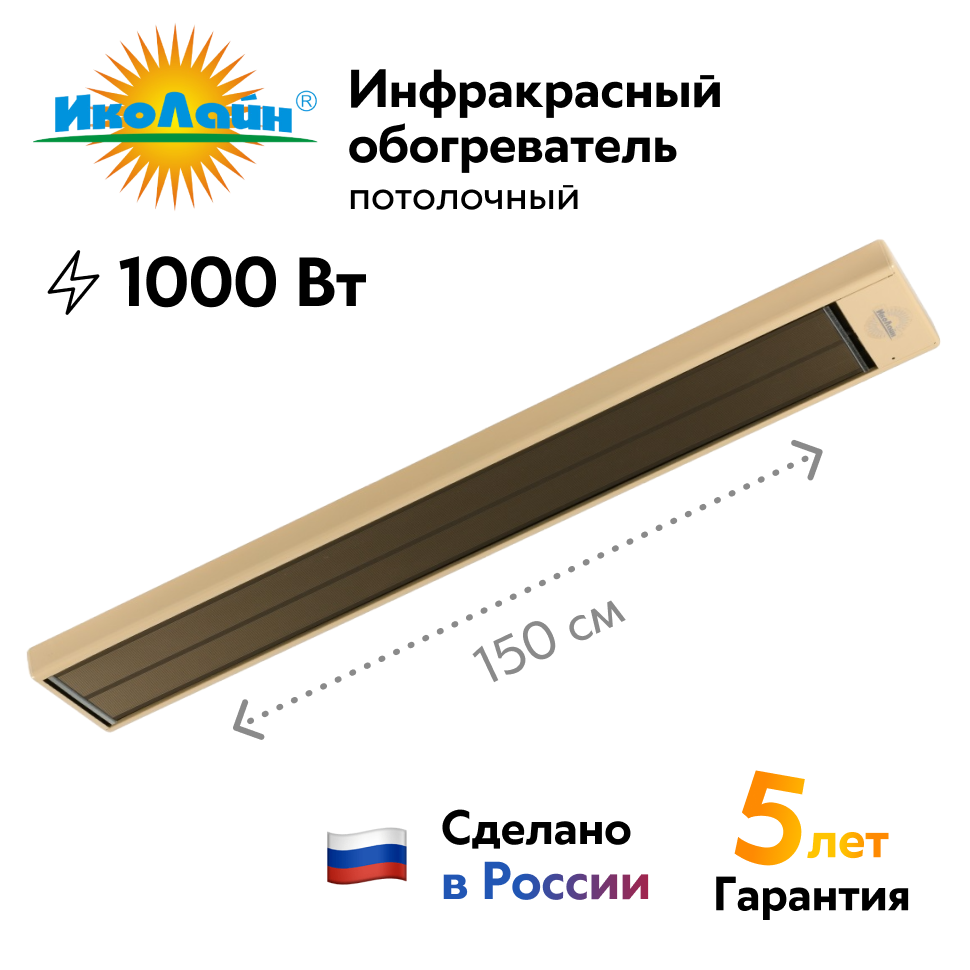 Инфракрасные обогреватели Потолочный инфракрасный обогреватель "ИкоЛайн" ИКО-10+ бежевый, для дома, дачи и теплиц (1000 Вт, до 20 кв.м.)
