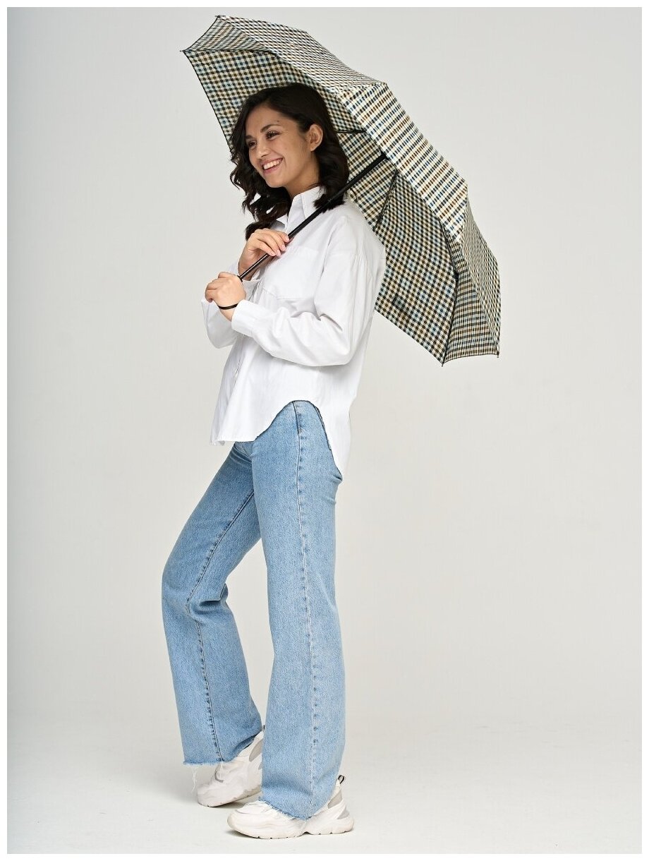 Лучшие цены. Классический женский зонт-автомат в клетку. Зонт с большим куполом и комфортной нескользящей ручкой. Ветроустойчивый каркас из 8 алюминиевых спиц с элементами из фибергласса. Магазины в вашем городе.