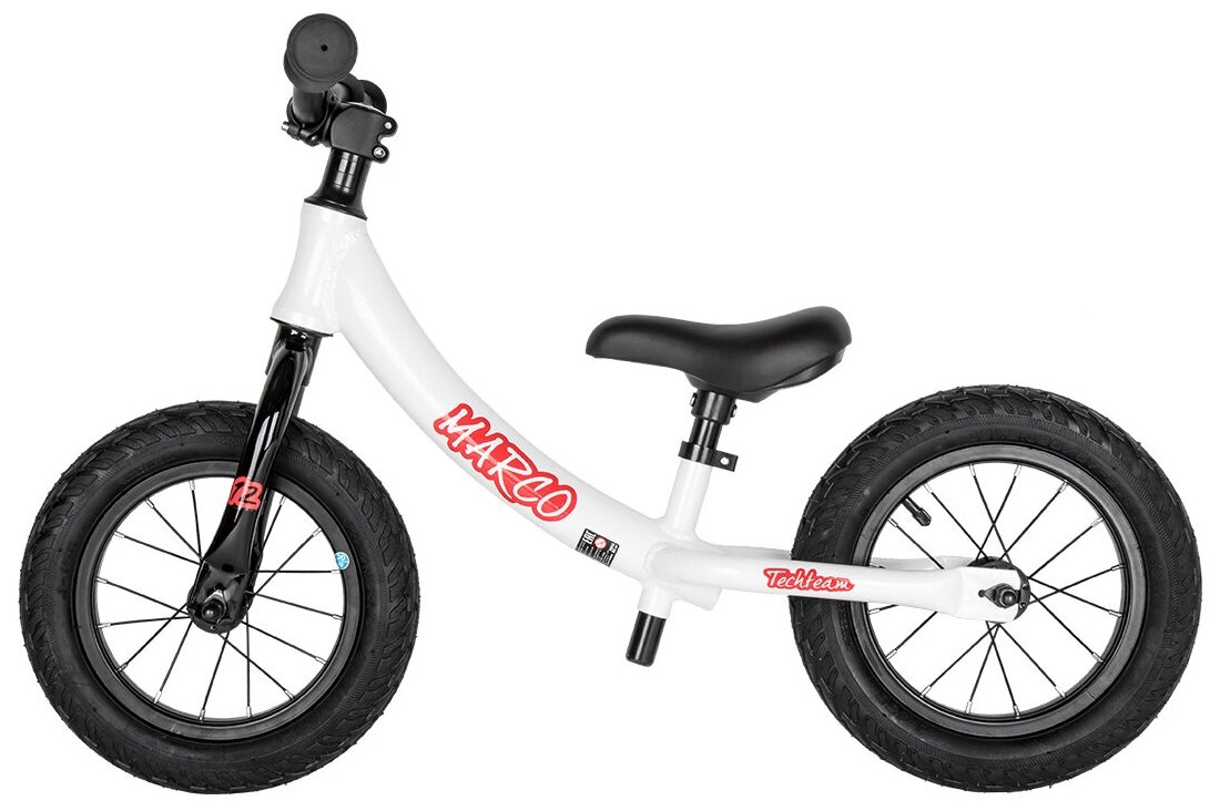 Лучшие цены. TechTeam Marco - беговел с надувными колёсами 12". Рулевая на промподшипниках. Сиденье поднимается очень высоко, поэтому в реальности модель может использоваться до 5-6 лет. Магазины в вашем городе.