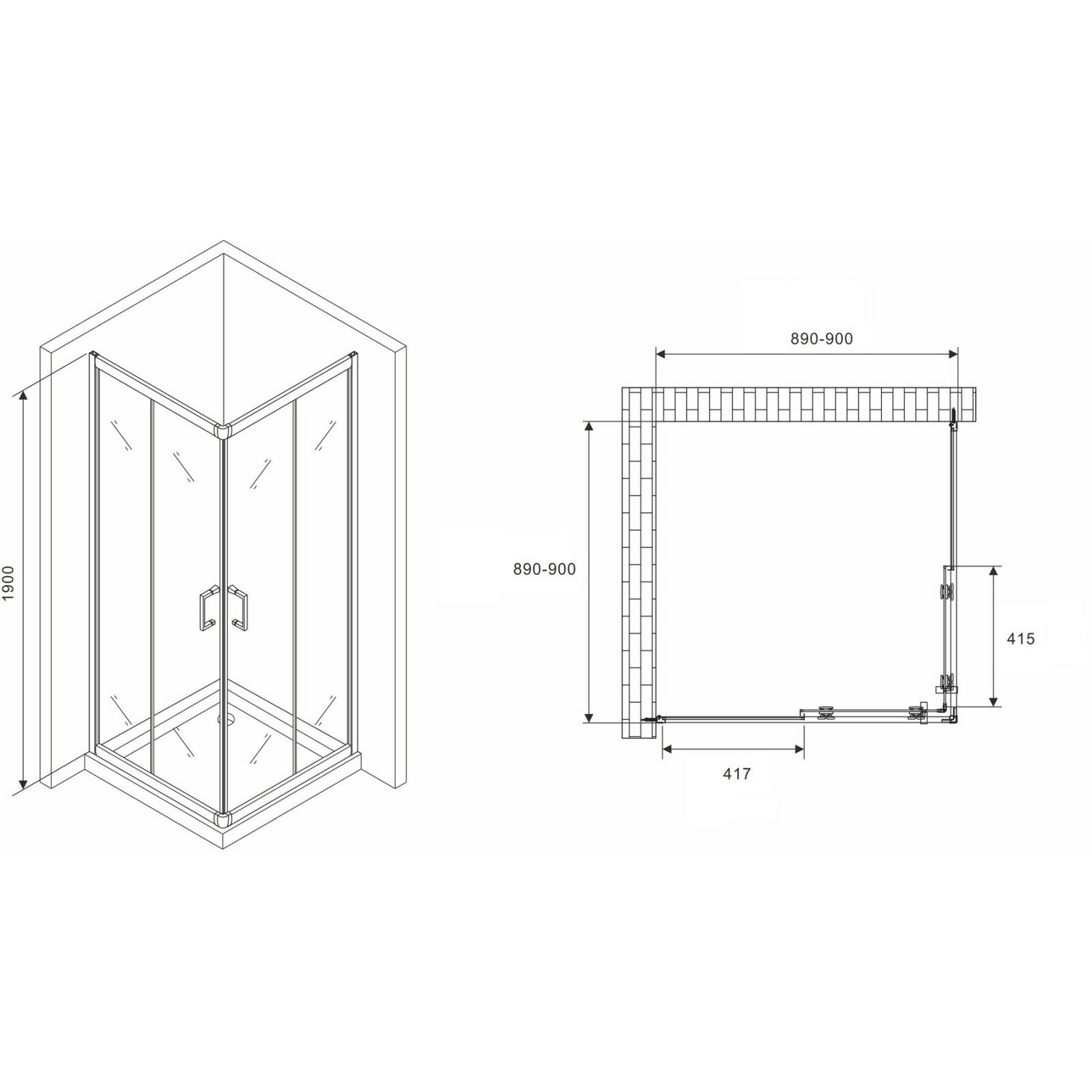 Душевой уголок Abber Schwarzer Diamant 90x90 AG02090B5 профиль Черный стекло прозрачное