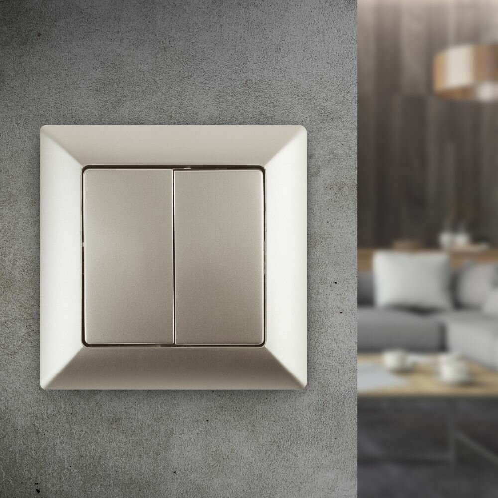 Выключатель Intro 4-104-04 Intro Выключатель двойной, 10А-250В, СУ, Solo, шампань (10/200/2400)