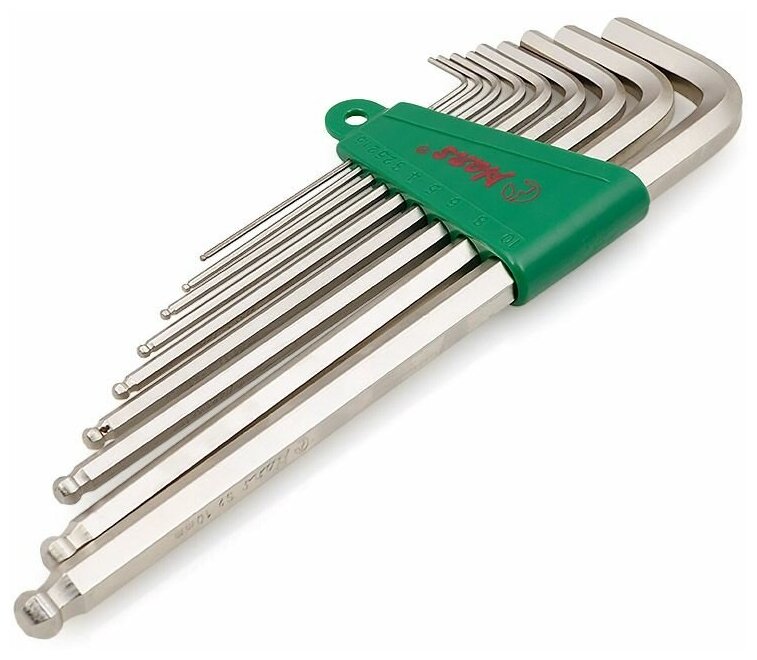 Лучшие цены. Характеристики Тип: HEX Размер min: 1.5 мм Размер max: 10 мм Размер min (дюйм): нет Размер max (дюйм): нет Трещотка: нет Покрытие: хромирование Материал: CrV Количество в наборе: 9 шт Класс товара: Профессиональный Диэлектрическое покрытие: нет Вес нетто: 0,5 кг Вид: миллиметровый Размер min (Т/E): нет Размер max (T/E): нет Форма: угловой Вид упаковки: пластиковый держатель С шаровым окончанием: да Шарнирный механизм: нет Комплектация 9 экстрадлинных шестигранников с шаровым окончанием: 1.5, 2, 2.5, 3, 4, 5. Магазины в вашем городе.