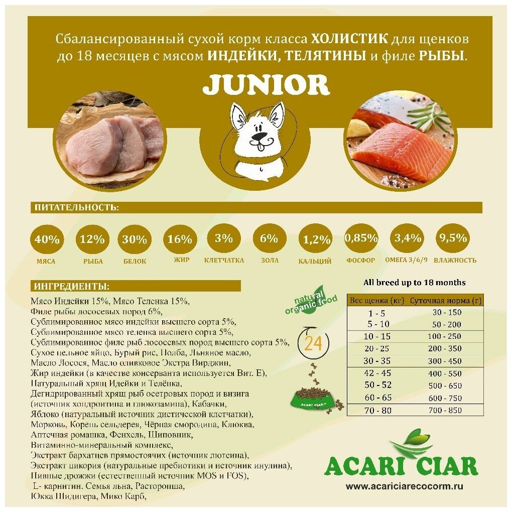 Сухой корм холистик для собак Acari Ciar (щенков с 6 до 18 месяцев) Junior 6,5 кг (гранула Медиум) 6 000 ₽ Подробнее