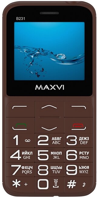 Лучшие цены. Сотовый телефон MAXVI B231 Brown Надёжный, эргономичный телефон с большим экраном (2,31"). Оснащён громким динамиком, ёмкой батарееё (1400 мАч) и ярким фонариком. Отдельная легкодоступная кнопка SOS, расположенная на тыльной стороне корпуса , даёт возможность быстрой связи с близкими в чрезвычайных ситуациях, когда важна каждая секунда. Характеристики Производитель MAXVI Тип устройства сотовый телефон Тип корпуса моноблок Количество SIM-карт две Тип SIM-карты Обычные Поддержка eSim Нет Поддержка 3G Нет. Магазины в вашем городе.