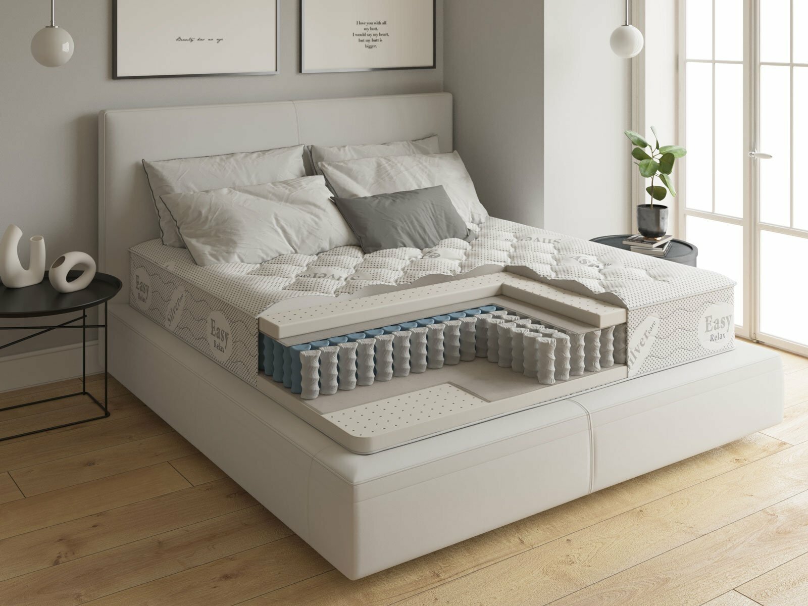 Лучшие цены. Высокий слой натурального латекса формирует оптимальную поддержку опорно-двигательного аппарата, что особенно полезно людям, работа которых связана с малоподвижными офисными буднями. Независимые пружины, 275 шт/м2. 5 зон поддержки. Высота: 24 см. Жесткость стороны 1: Средний, Латекс. Жесткость стороны 2: Средний, Латекс. Вес на одно место: до 170 кг. Чехол: Трикотаж (Зима-лето). Магазины в вашем городе.