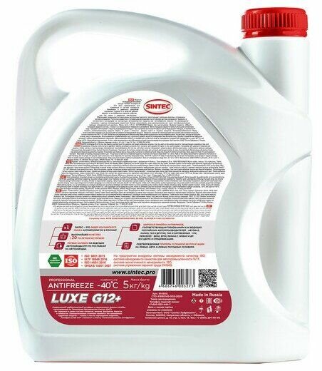 Антифриз SINTEC LUXE G12+ -40 5 л 5 кг