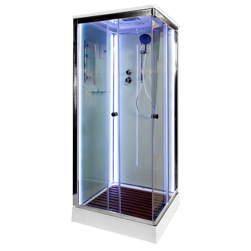 Душевая кабина Deto K409S 90x90 LED с электрикой прозрачная/хром