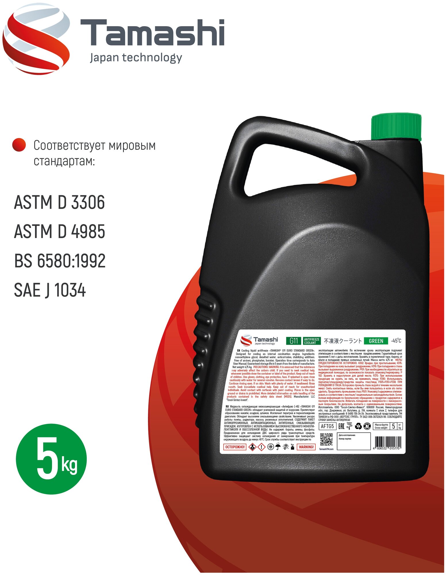 TAMASHI AFTG5 Антифриз TAMASHI G11 EURO STANDARD GREEN, 5кг, зеленый, готовый, до -45°C