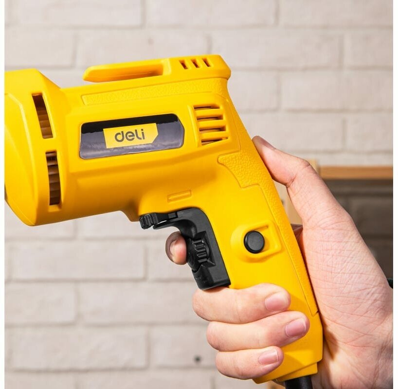 Лучшие цены. Дрель электрическая сетевая безударная Дели DL-DZ10-E1 – компактная, лёгкая дрель предназначена для закручивания/откручивание шурупов, саморезов, винтов и для проделывания отверстий в древесине до 25мм и металле до 10мм. Незаменимый помощник для работы дома своими руками, на стройке, в гараже, на небольших производствах. Оснащена функцией реверса для облегченного изъятия сверла при застревании и быстрозажимным патроном для быстрой смены оснастки. Магазины в вашем городе.