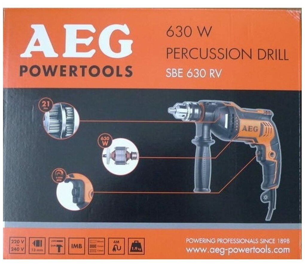 Лучшие цены. Ударная дрель AEG SBE 630 RV – отличающийся эффективностью инструмент, который может быть полезным мастерам в различных сферах деятельности. Он рассчитан на создание отверстий в разных по плотности материалах. Диаметр сверления при решении задач со сталью у предлагаемого агрегата составляет 13 мм, с бетоном 15 мм, а с древесиной 30 мм. Что касается частоты ударов, то она достигает показателя 23200 уд/мин. Преимущества дрели АЕГ SBE 630 RV Данная сетевая дрель обладает немалым количеством сильных сторон. Магазины в вашем городе.