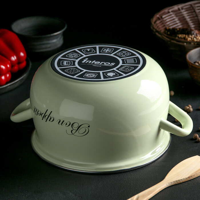Interos Кастрюля «Лайм», 5,7 л, стеклянная крышка, индукция, цвет светло-зелёный