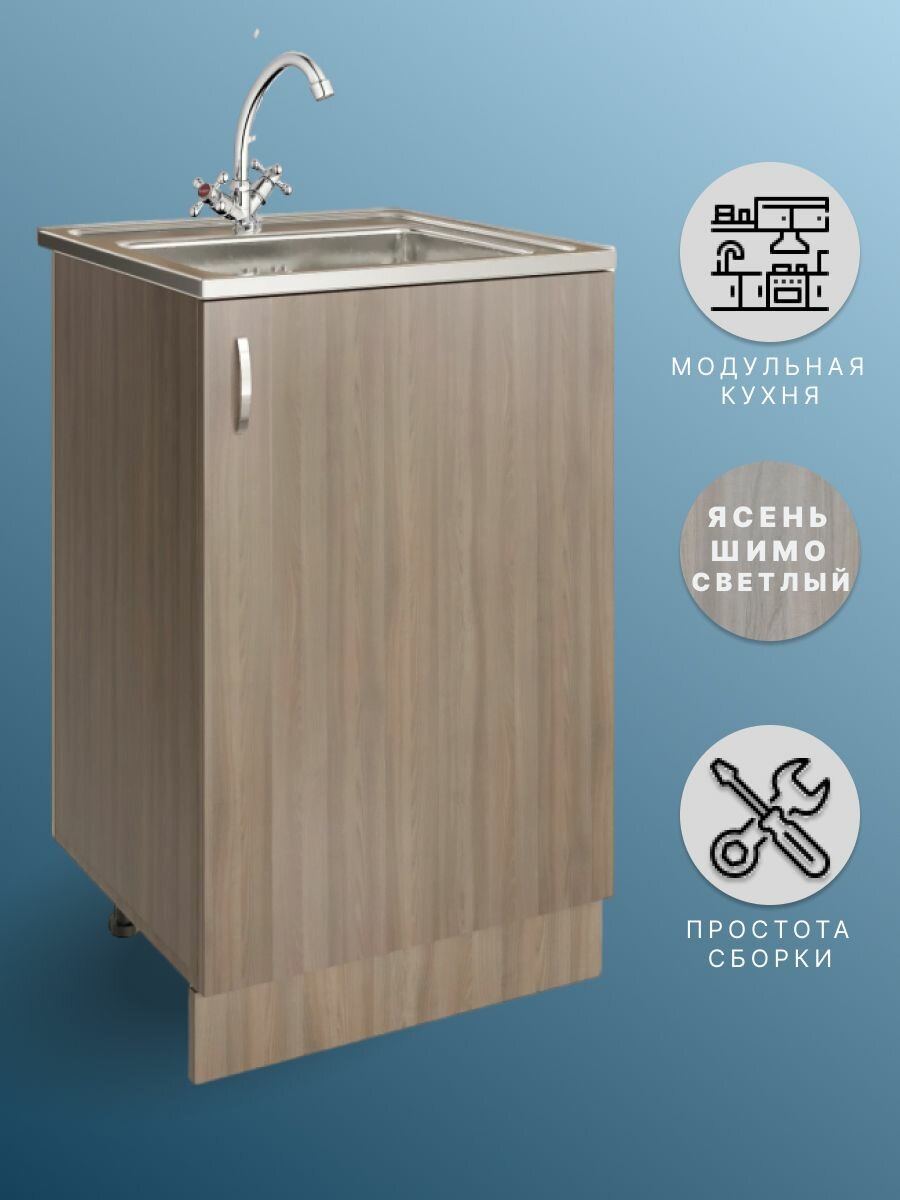 Кухонный гарнитур, Модуль напольный, тумба под мойку для кухни, 50х43,6х82, ясень светлый 4 560 ₽ Подробнее