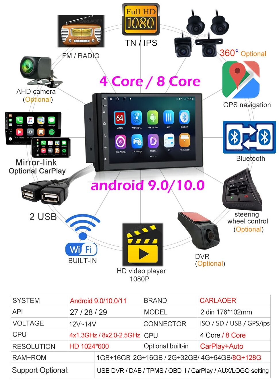 Автомагнитолы Магнитола 2din/Android CarPlay/Android Auto/2din Андроид 11