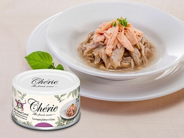 Влажный корм для кошек Pettric Cherie Hairball Formula Tuna topping Salmon/Тунец с лососем в подливке для выведения комочков шерсти, (80 гр* 24 шт)