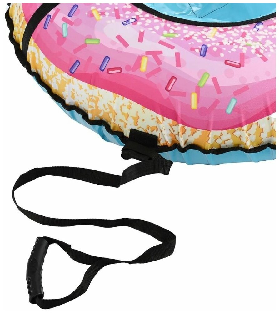 Лучшие цены. Тюбинг с дизайном «Пончик» предназначен для детей старше 3-х лет. Материал: - верх – ткань OXFORD 500D с красочным круговым рисунком; - дно – автотент ПВХ 610. Преимущества: - усиленное дно; - все швы усилены капроновой лентой; - крепкие эргономичные ручки; - защитный внутренний клапан с потайной молнией; - буксировочный ремень; - устойчивый к морозам материал до -28ºС; - камера в комплекте. Диаметр: - чехол – 93 см; - тюбинг в накачанном виде – 85 см; Габаритные размеры: - в сложенном виде (ДхШхВ). Магазины в вашем городе.