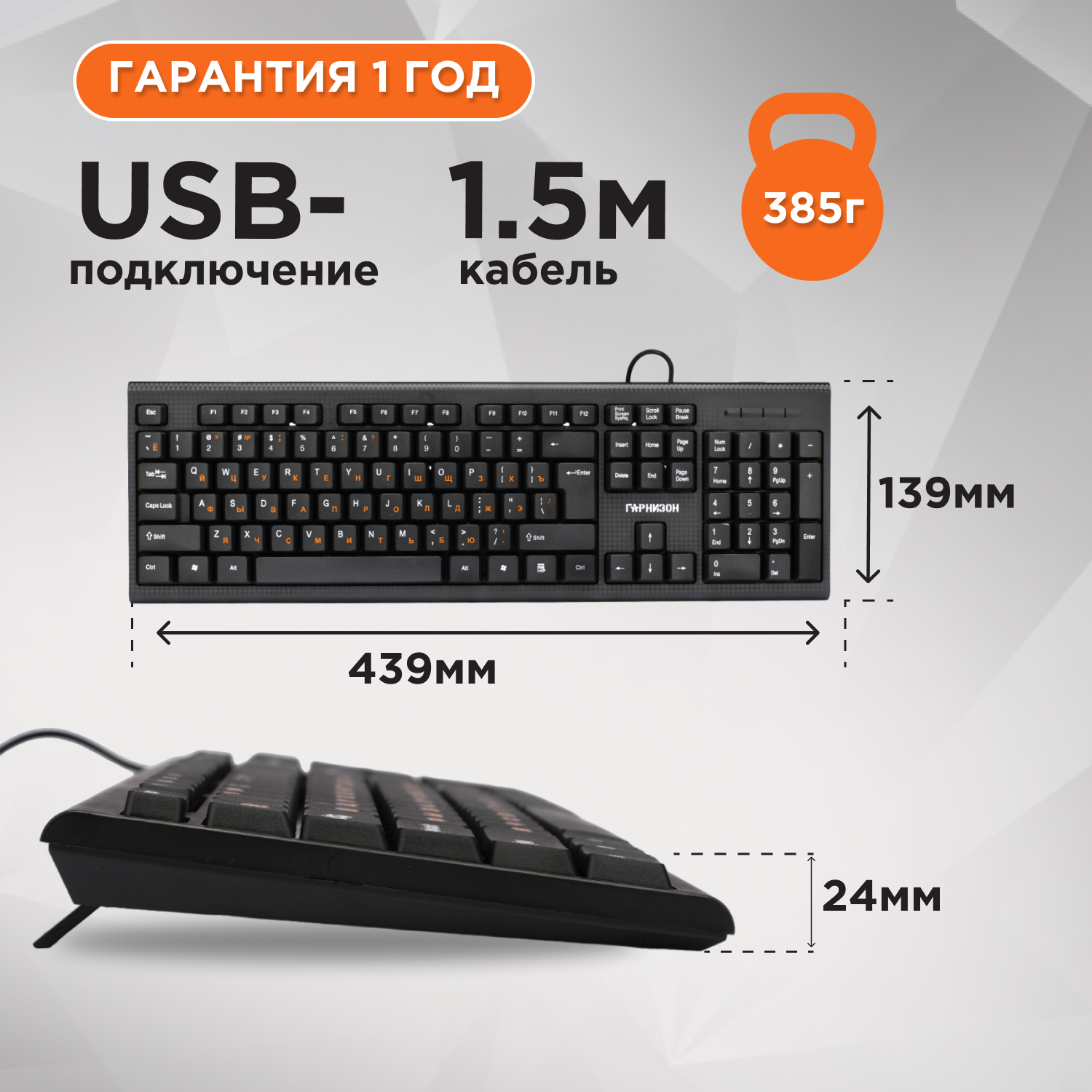 Проводная клавиатура Гарнизон GK-120 Черный (USB, поверхность карбон, кабель 1.5м) 599 ₽ Подробнее