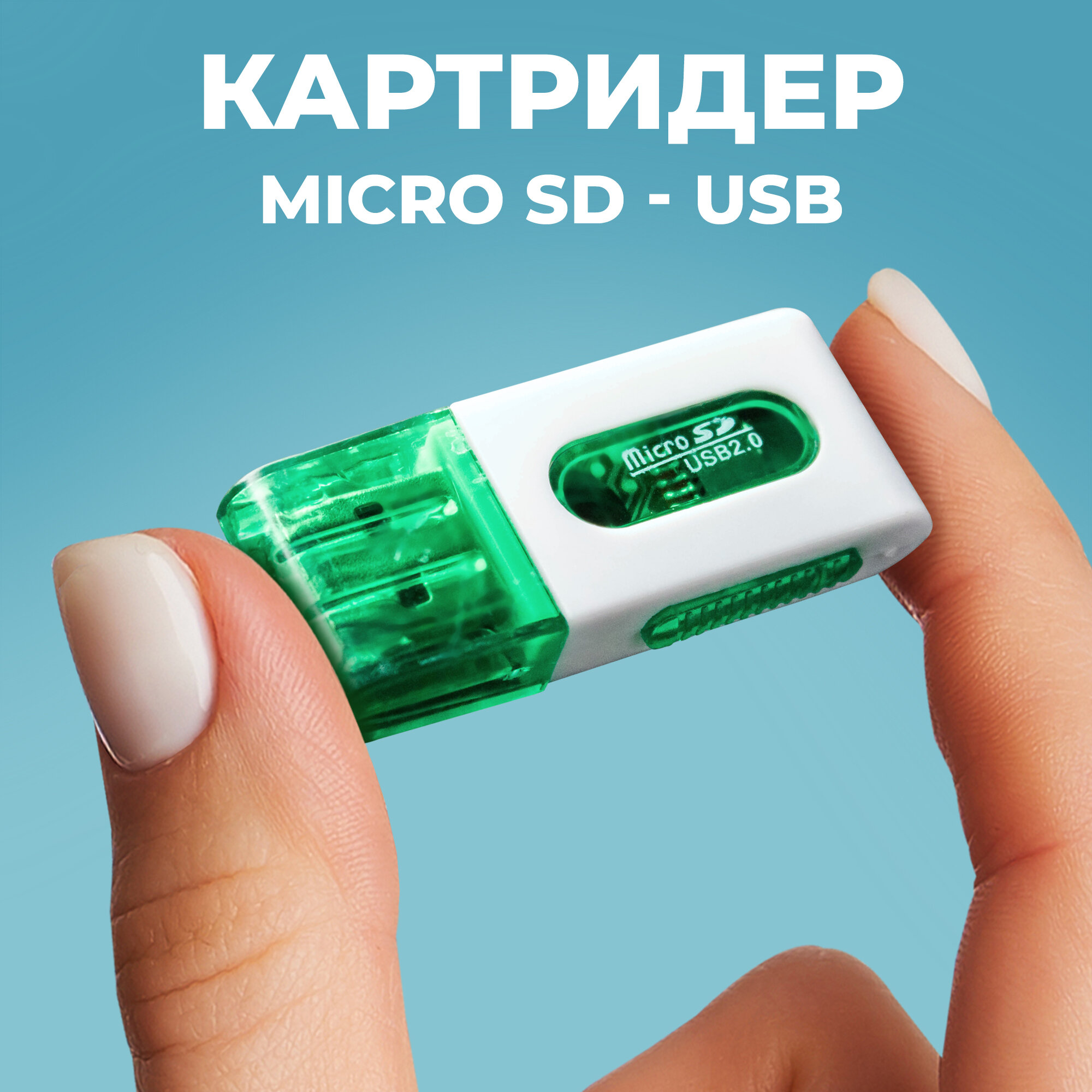 Картридеры и USB-хабы Картридер для чтения карт памяти microSD, WALKER, WCD-17, Адаптер переходник для компьютера и ноутбука, Card reader, USB-порт, карт ридер, белый