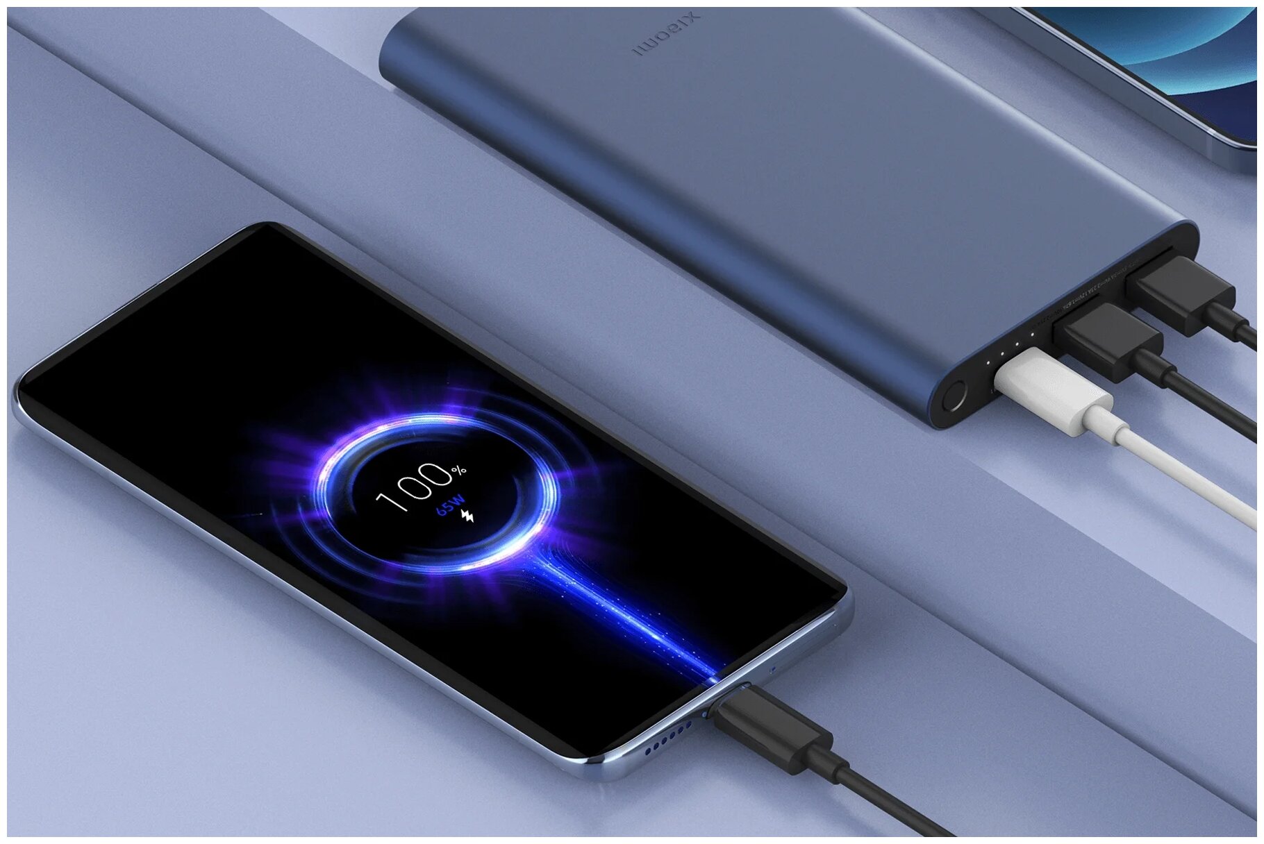 Лучшие цены. Двусторонняя быстрая зарядка Xiaomi 22.5W Power Bank 10000mAh. Более быстрая зарядка других устройств и самозарядка. Максимальная мощность зарядки электронных устройств составляет 22,5 Вт. Порт USB-C поддерживает двустороннюю быструю зарядку, а полная зарядка внешнего аккумулятора занимает всего 4,5 часа. Подходит для одновременной зарядки нескольких устройств. Два порта USB-A и один порт USB-C можно использовать одновременно для зарядки различных типов электронных устройств, например смартфонов, планшетов. Магазины в вашем городе.