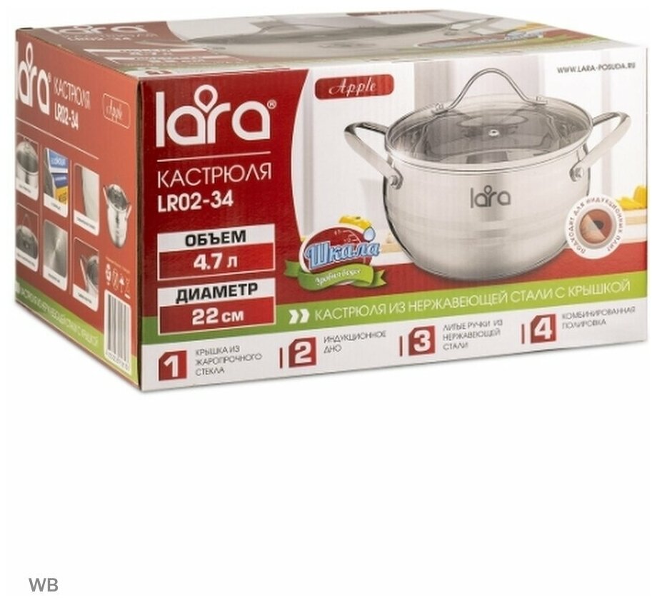Лучшие цены. Кастрюля из нержавеющей стали-отличный вариант долговечной и прочной посуды, идеально подходящей для варки, тушения и запекания. Она проста в обслуживании, экономична, отлично сохраняет тепло и равномерно готовит продукты. Торговая марка Lara предлагает покупателю широкий выбор посуды для приготовления и кухонных аксессуаров. В ассортименте производителя долгие годы присутствуют кастрюли из нержавеющей стали и наборы кастрюль. Кастрюля из нержавеющей стали LR02-31. Магазины в вашем городе.