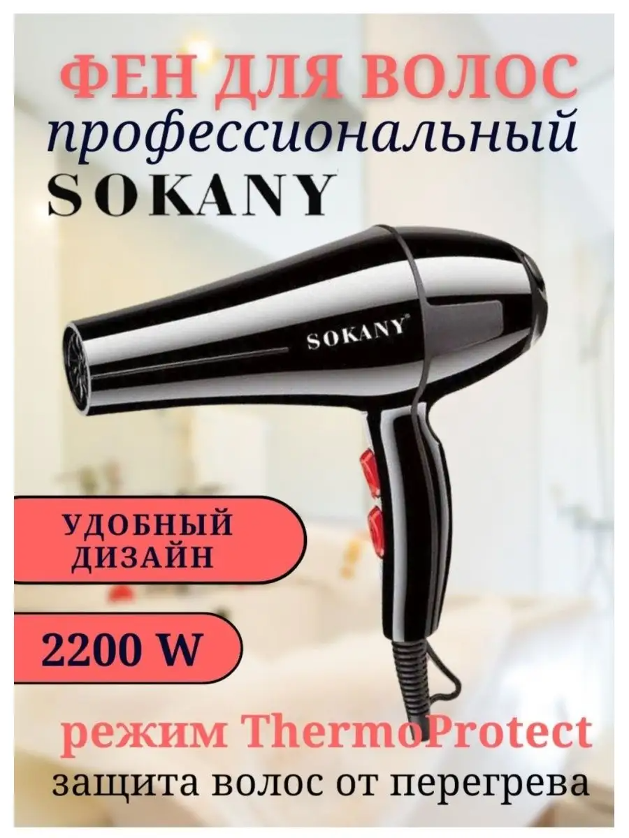 Супермощный профессиональный фен для волос BE BEAUTIFUL/ Sokany SK-2200/ Мощность 2200 Вт с эффектом быстрой бережной сушки