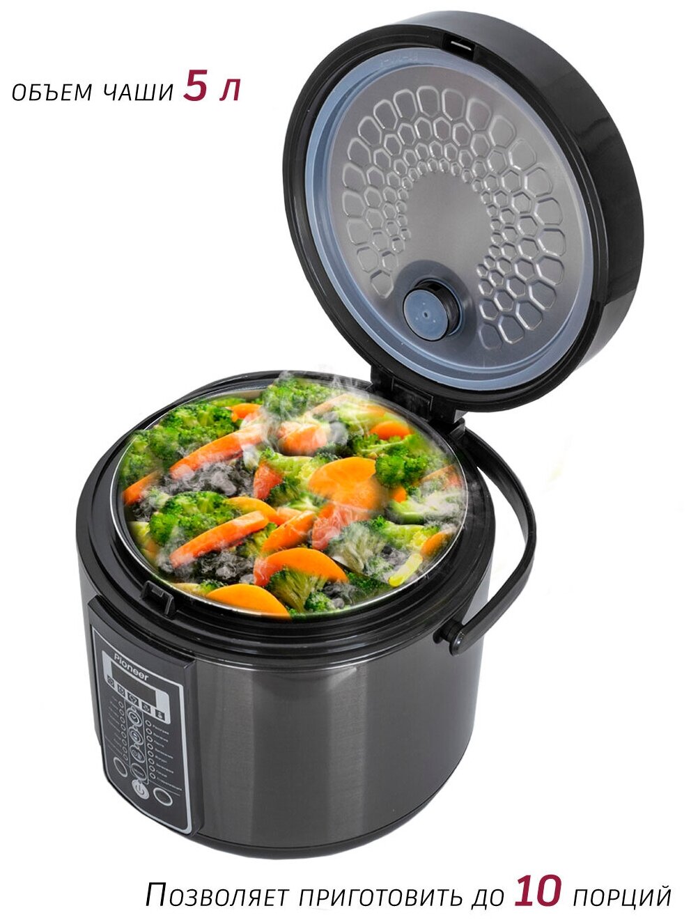 Мультиварки Мультиварка Pioneer с антипригарной чашей 5 л, с функцией самоочистки, 16 автоматических программ, 200 режимов приготовления, Мой рецепт, йогурт, пицца, стерилизация, 860 Вт