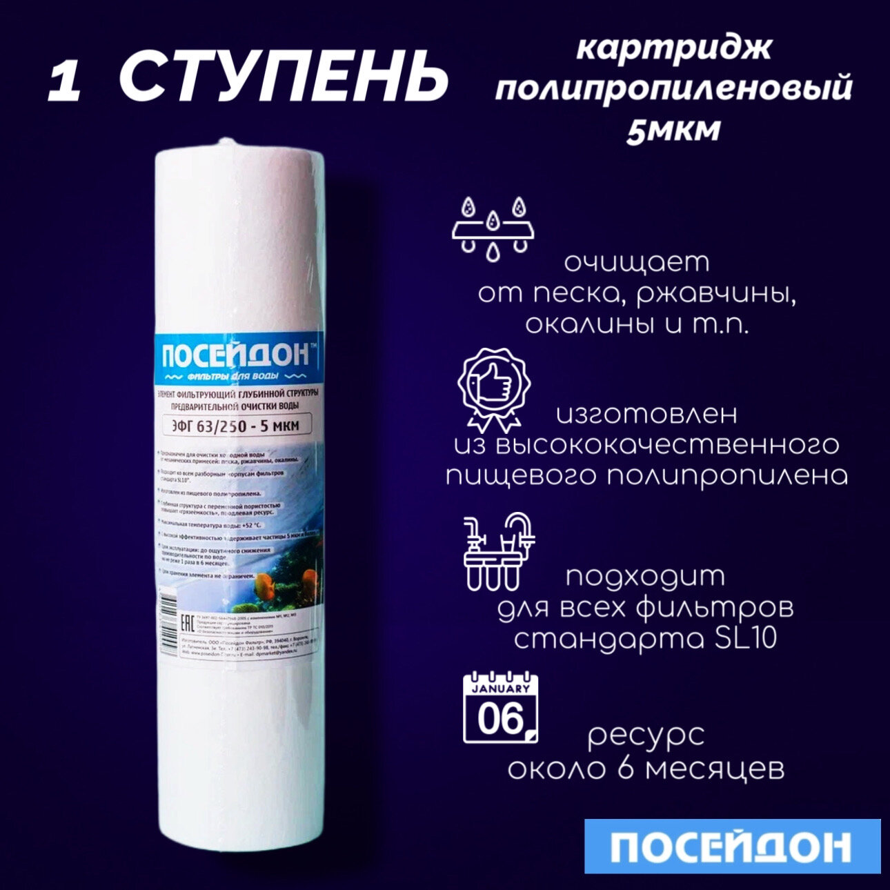 Картриджи для воды Комплект картриджей для жёсткой воды "ПОСЕЙДОН-3" стандарта SL10 для любых трёхступенчатых систем очистки