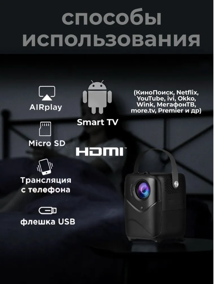 Проекторы Проектор / Проектор для дома и офиса / Проектор для фильмов / Smart Full HD проектор / Проектор для презентаций / Видеопроектор / Кинопроектор