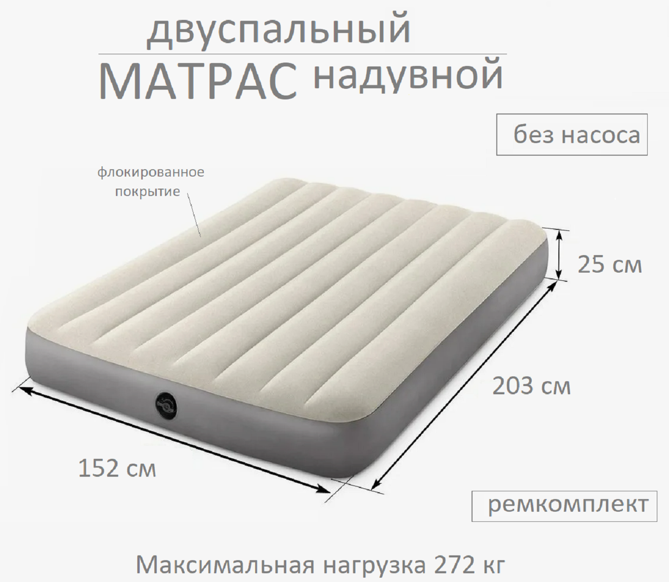 Двуспальный надувной матрас Intex Deluxe Single-High Airbed (Queen), 152х203х25 см, 64103 2 543 ₽ Подробнее