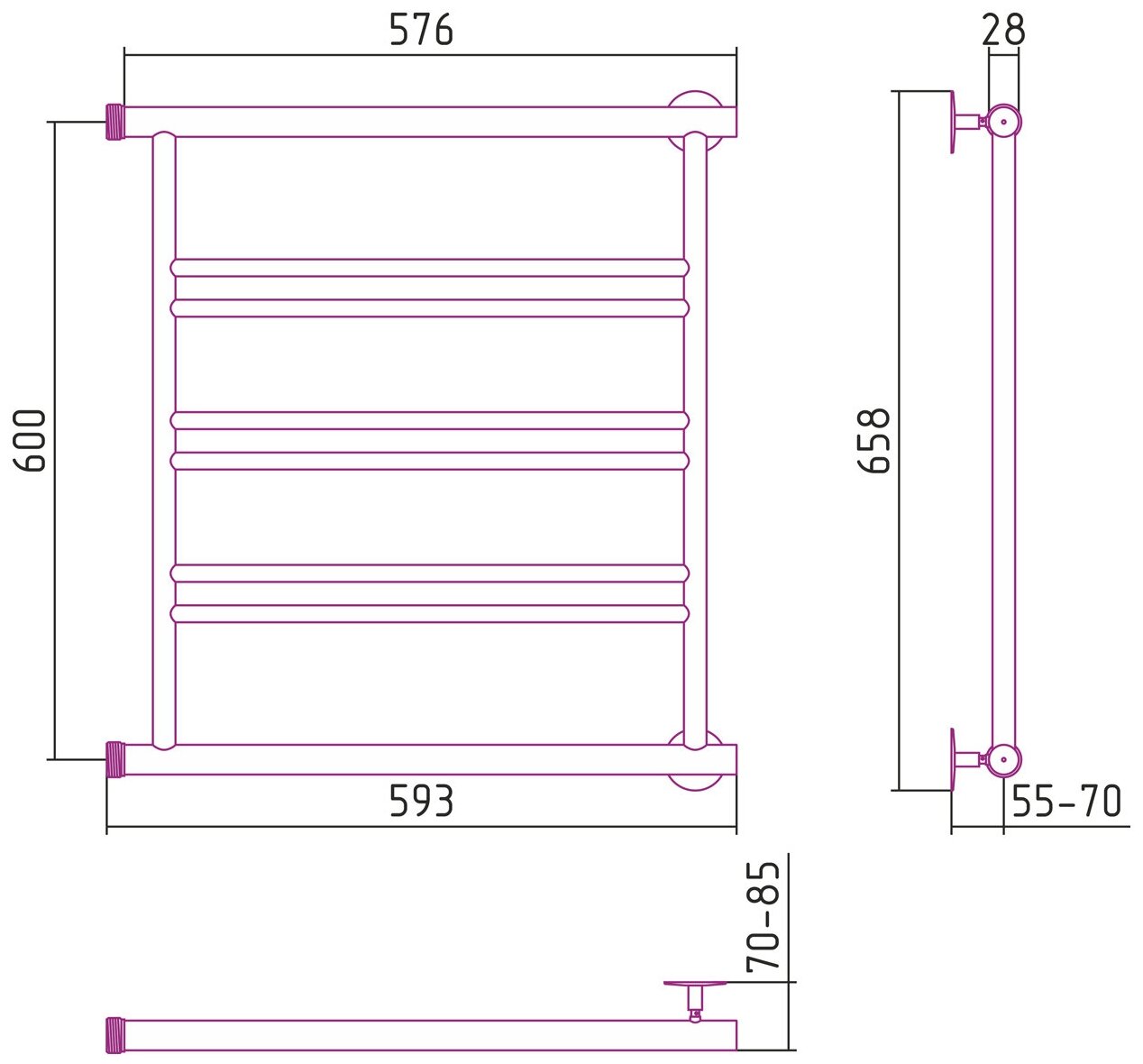 Полотенцесушитель Полотенцесушитель водяной Стилье Минор 600х600 (2+2+2) арт. 00601-6060