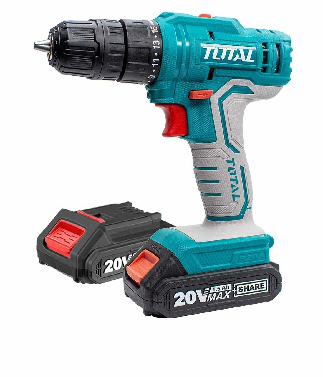 Лучшие цены. "Аккумуляторная дрель-шуруповерт Li-ion 20V, 1.5Ah (коробка, 1 аккумулятор) TOTAL Аккумуляторный шуруповерт Li-ion Напряжение: 20 В Скорость холостого хода: 0-400 / 0-1500 / мин Максимальный крутящий момент: 20 Нм Патрон: 0,8-10 мм Настройки крутящего момента: 15 + 1 Механическая двухступенчатая передача Напряжение зарядки: 220-240 В ~ 50/60 Гц Встроенная рабочая подсветка С аккумулятором 1 шт 1,5 Ач С зарядным устройством 1 шт. Магазины в вашем городе.