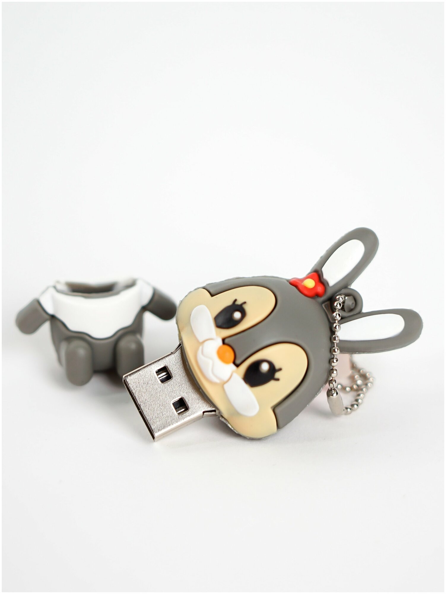 USB Flash (флешка) Флешка USB 2.0 16 GB, Оригинальная подарочная в виде Зайчика Зайца, Сувенир подарок ЮСБ 16 ГБ, USB Flash Drive Hare Rabbit, Флеш накопитель Заяц Зайчик, серый
